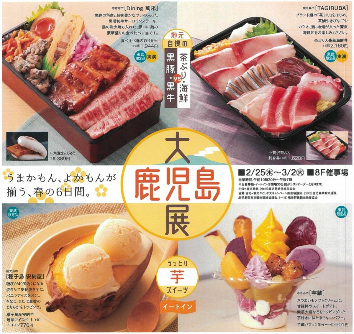 開催日:2020年2月25日(木)~3月2日(火) 時間:午前10時〜午後7時 ※最終日は午後6時閉場 会場:東武百貨店 池袋店 8階 催事場 アクセス:東京都豊島区西池袋1-1-25 東武百貨店 池…
